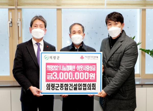 의령군 종합건설업협의회는 23일 의령군을 방문하여 이웃돕기 성금 300만원을 기탁했다.