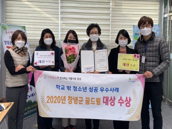 창녕군은 '2020년 경상남도 학교밖청소년지원센터 성공 우수사례 공모전’에서 창녕군학교밖청소년지원센터 꿈드림이 대상을 수상했다고 밝혔다.