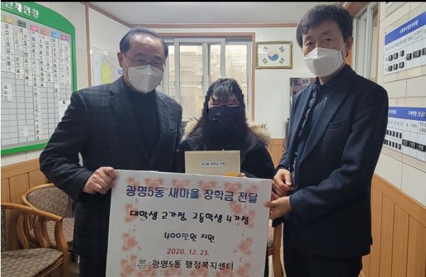 광명시 광명5동 새마을 지도자협의회·부녀회는 23일 어려운 가정의 대학생(2명 각 100만원)과 고등학생(4명 각 50만원씩)에게 총 400만원의 장학금을 전달했다.