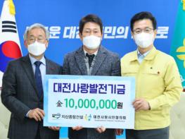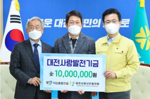 대전광역시는 지산종합건설에서 24일 오전 11시 대전시에 대전사랑운동 활성화를 위해 1,000만 원을 대전사랑시민협의회를 통해기탁했다고 밝혔다.