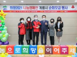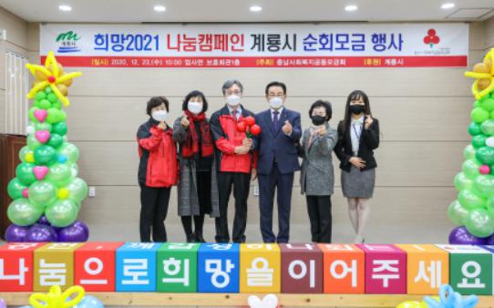 계룡시는 23일 보훈회관에서 연말연시 나눔 문화 확산을 위한 '희망2021 나눔캠페인’ 순회 모금행사를 전개했다고 전했다.