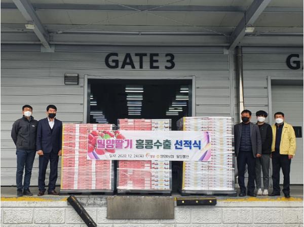 밀양시는 24일 밀양농협원예APC에서 밀양농협 공판장지점장, 밀양물산 대표 등 10여명이 참석한 가운데 밀양딸기 홍콩수출 선적식을 개최했다고 밝혔다.