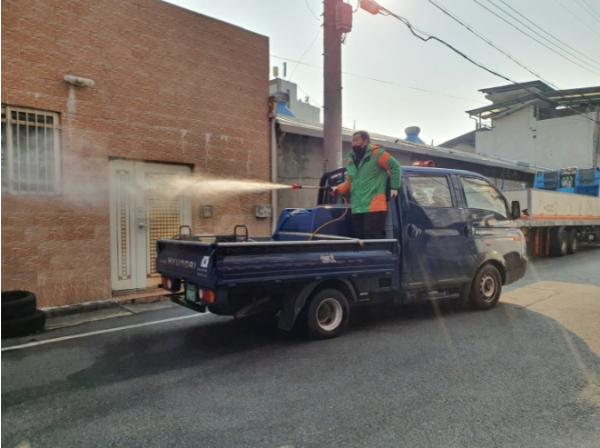 김천시 자산동 자율방재단(단장 서충근)에서는 12월 24일 코로나19 확산방지를 위해 관내 자체방역활동을 실시하였다.