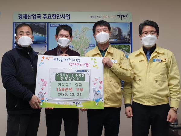 고현시장 내 주차장 장터상인회는 지난 24일, 크리스마스 선물 같은 성금 158만원을 거제시 저소득 가정지원을 위해 기부했다.