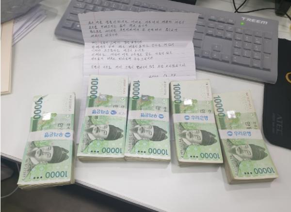 강동구 길동주민센터(동장 안상덕)는 익명의 기부자가 24일(목) 오전 9시경 회색 비닐봉투 안에 현금 500만 원과 편지 한통을 두고 갔다고 밝혔다.