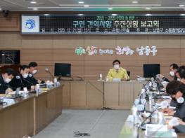 이날 보고회는 민선7기에 실시한 ‘2018년 동 방문 소통간담회’, ‘2019년 구청장 1일 동장제’, ‘2020년 구청장 동 현장소통 방문’을 통해 접수된 구민 건의사항의 진행 상황을 점검하는 자리로 9개 소관 부서장과 국장이 참석했다.