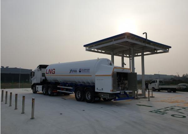 특구사업으로 제작·구축한 이동식 LNG 충전소에서 LNG 차량에 연료 공급과 충전소 운영에 관한 안전성 등을 검증한다.