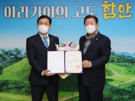 함안군은 지난 24일 군수실에서 2020년 국민운동활성화 유공자 표창 수여식을 열어 조용민 한국자유총연맹 함안군지회장에게 국무총리 표창을 수여했다.