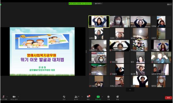 교육에 참가한 한 명예사회복지공무원은 “코로나19로 주변에 어려움을 호소하는 이웃이 늘어 안타까웠는데 오늘 교육을 통해 질문하는 법, 마음을 전달하는 방법을 배울 수 있어 좋았고, 평소 알고 있었던 것 보다 이웃에게 도움을 줄 수 있는 지원이 많아서 기쁘다”며 교육 참여 소감을 밝혔다.