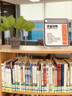 큰 글자책은 활자의 크기가 일반 책보다 1.5배 이상 커 시력 문제로 독서에 관심이 떨어질 수 있는 중장년층이 돋보기 없이도 독서 활동을 즐길 수 있는 책이다. 현재 학마을도서관은 중장년층의 독서문화 활성화를 위해 APPLE 특성화 자료 약 1,500권과 큰글자책 546권을 소장하고 있다.