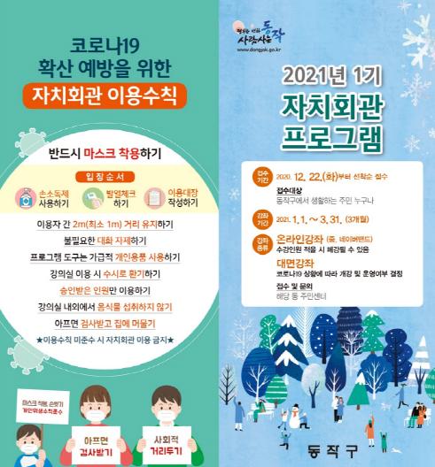 동작구가 내년 3월 말까지 ‘2021년 1기 자치회관 프로그램’을 운영한다고 28일 밝혔다.
