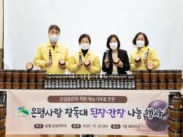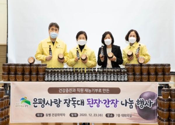 은평구보건소는 12월 23일(수) 은평구청 대회의실에서 올해 건강증진과 직원들의 재능기부로 담근 된장과 간장을 건강취약계층(찾동 대상자)에게 전달하는 ‘이웃과 함께하는 은평사랑 전통장(醬) 나눔’ 행사를 진행했다.