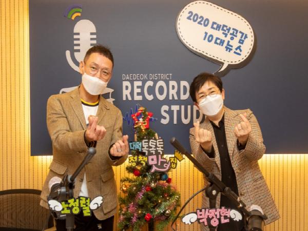 이번 방송에서는 대전 출신의 개그맨 노정렬씨와 박정현 대덕구청장이 출연해 2020년 한 해 동안 주민들로부터 가장 많은 관심과 공감을 얻은 ‘대덕공감 10대 뉴스’를 주제로 이야기를 나눴다.