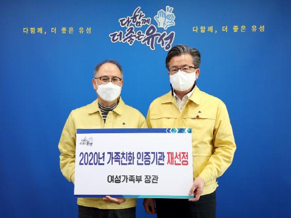 대전 유성구는 여성가족부가 주관하는 가족친화 인증기관에 재선정됐다고 27일 밝혔다.