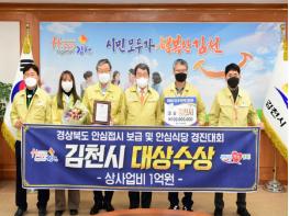 경상북도가 코로나19 확산 방지를 위해 전국에서 선도적으로 추진한 안심접시(개인 앞접시)와 안심식당 지정제 경진대회에서 김천시가 대상 수상과 함께 시상금 1억 원을 받았다.