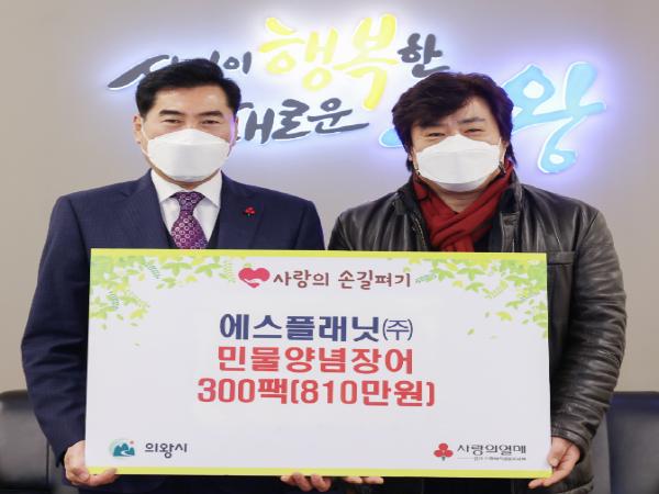 군포시에 소재한 에스플래닛(주)에서 28일 연말을 맞아 어려운 이웃에게 전해달라며 800만원 상당의 양념민물장어 300박스를 의왕시에 기부했다.