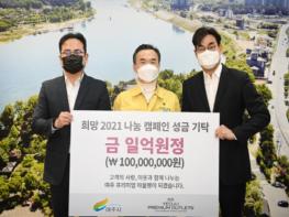 여주시는 상거동 소재 ㈜신세계사이먼 여주 프리미엄 아울렛 관계자가 12월 24일 여주시청을 방문해 어려움을 겪고 있는 취약계층을 위해 써달라며 성금 1억 원을 기탁했다고 24일 밝혔다.
