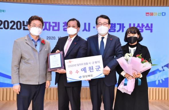 예천군이 경상북도 주관 ‘2020년 경상북도 일자리창출 평가’에서 우수상을 수상했다.