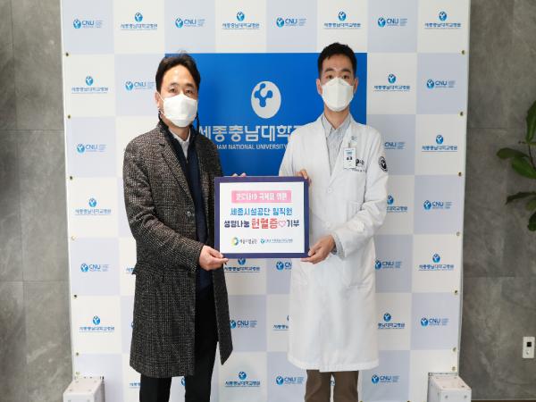 세종충남대학교병원(원장 나용길)은 12월 28일 세종시설관리공단(이사장 계용준)으로부터 코로나19 극복을 위한 헌혈증서를 기부받았다.