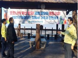 창원시 성산구는 28일, 연말연시 특별방역대책에 따른 관내 해맞이 명소에 대한 현수막을 게첨하고 현장점검을 실시했다고 밝혔다.
