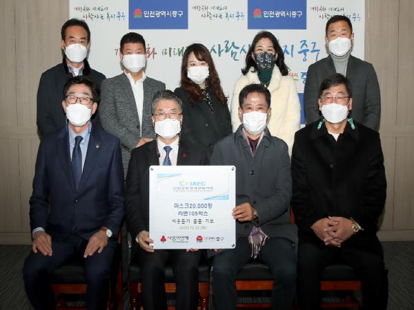 인천공항경제권협의회(회장 이희안)는 지난 22일 인천 중구를 방문하여 영종국제도시 저소득계층 시민들을 위해 마스크 2만 장, 라면 105박스를 전달하는 후원물품 전달식을 가졌다.