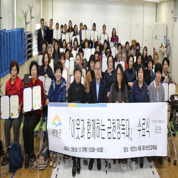 장나누기 행사에 앞서 ‘금천장독대’ 프로그램 3회 과정을 모두 수료한 주민 57명에게 유성훈 금천구청장이 수료증을 전달했다.