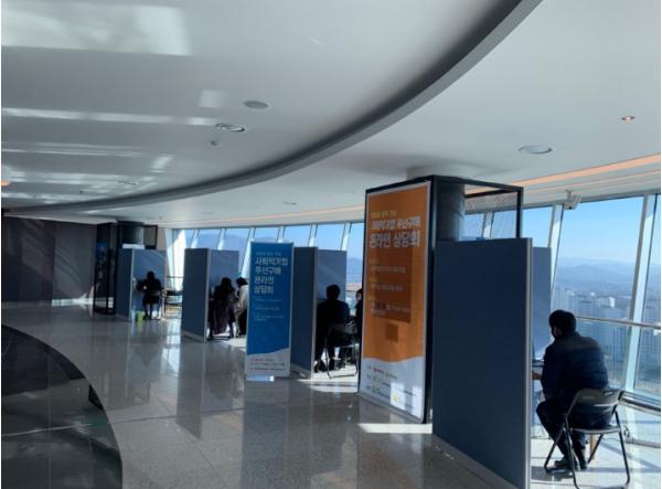 이날 우선구매 온라인 상담회는 한국전력공사, 한국농어촌공사, 한국인터넷진흥원 등 8개 이전기관 구매 담당자는 공동혁신도시 빛가람호수공원 빛가람전망대 5층에서 기관별 부스를 마련해 영상회의 방식으로 광주·전남 25개 사회적기업과 구매 상담을 진행했다.