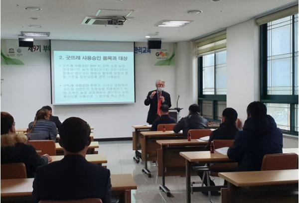 부여군(군수 박정현)은 제9기 부여군 공동상표 굿뜨래 사용승인 조직 66개소를 선정하고 신규 8개 조직에 대해서 품질관리 교육을 실시하였다.