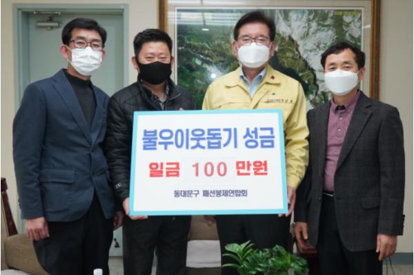 유덕열 동대문구청장은 “힘든 시기임에도 생계에 어려움을 겪고 있는 이웃을 위해 성금을 기탁해 주신 동대문구패션봉제연합회에 감사드린다”며, “기탁된 성금은 꼭 필요한 이웃에게 잘 전달하도록 하겠다”고 밝혔다.