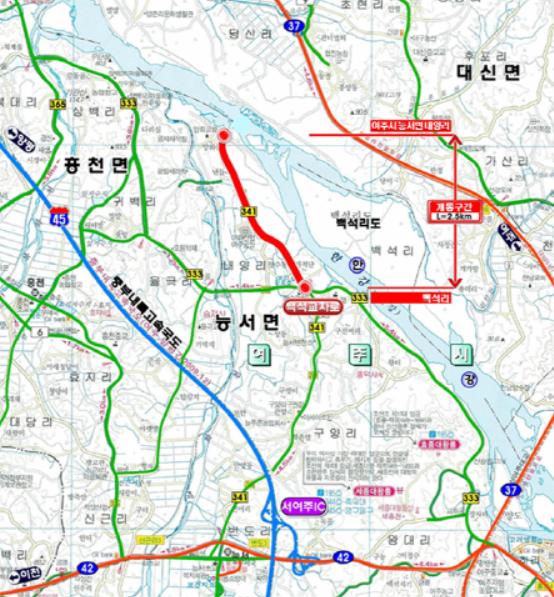 경기도는 여주시 능서면 백석리와 내양리를 연결하는 지방도 341호선 2.5km 구간이 28일 정오 개통했다고 밝혔다.