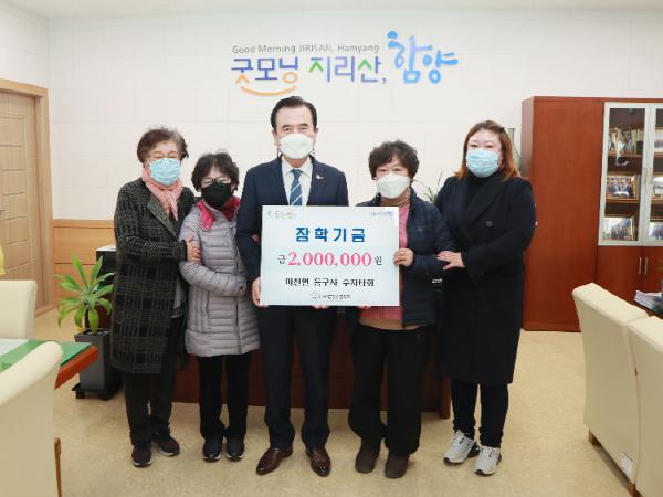 함양군 마천면 소재 사찰 등구사의 신도들이 (사)함양군장학회에 인재육성을 위한 장학금 200만원을 기탁하였다.
