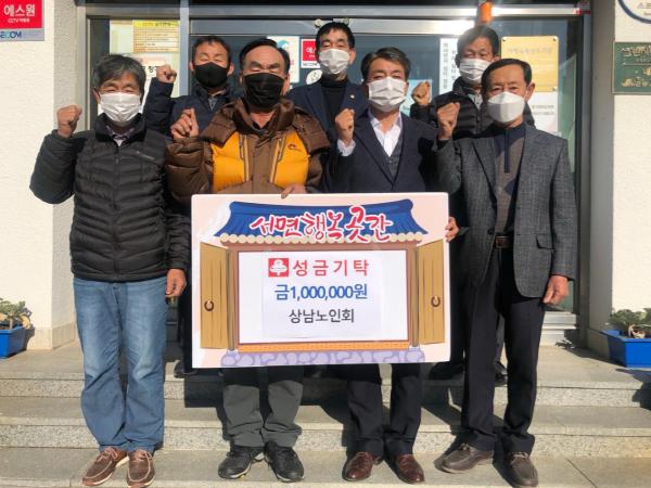 서면 상남노인회는 28일 서면행정복지센터를 방문하여 연말 이웃돕기 성금 100만원을 기탁했다.