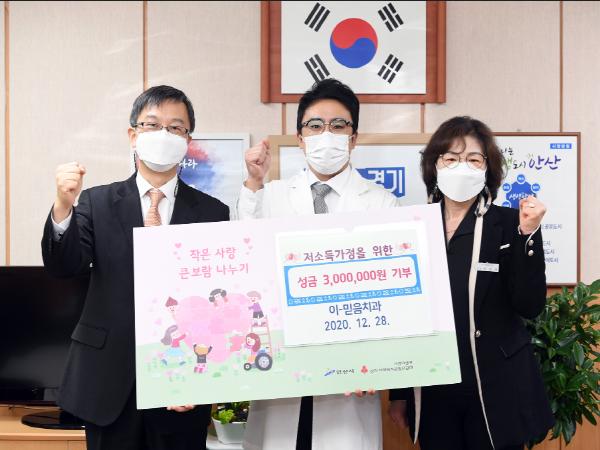 안산시는 이-믿음치과로부터 관내 저소득 가정을 위한 사랑의 후원금 300만원을 기탁받았다고 29일 밝혔다.