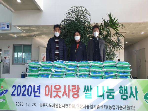 전날 기증된 쌀은 올 한해 농촌지도자안산시연합회 회원들이 정성을 다해 농사를 지어 수확한 우리 지역의 고품질 쌀로, 회원들은 매년 연말마다 안산시에 기탁해 오고 있다.