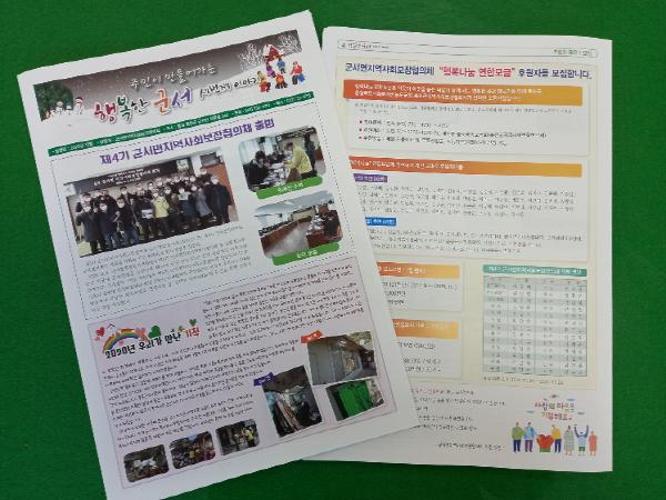 김종범 민간위원장은 “소식지를 발간하며 올 한 해 코로나로 인해 많은 활동의 제약이 있었지만, 힘든 상황에서 지역을 위해 복지사각지대를 찾아다니며 많은 분들이 복지혜택을 받을 수 있도록 최선을 다했다. 내년에도 다같이 행복할 수 있는 군서면을 위해 협의체위원들과 함께 힘껏 노력해 나가겠다.”고 전했다.