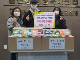 흥선동 행정복지센터는 12월 23일 광동고등학교 학생 2명과 학부모 1명이 학생들이 만든 수제 수제미 400개를 기탁했다고 밝혔다.