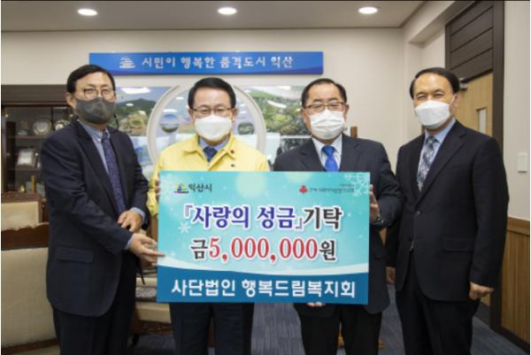 익산시는 (사)행복드림복지회가 29일 시청을 방문해 어려운 이웃돕기 성금 500만원을 기탁했다고 밝혔다.