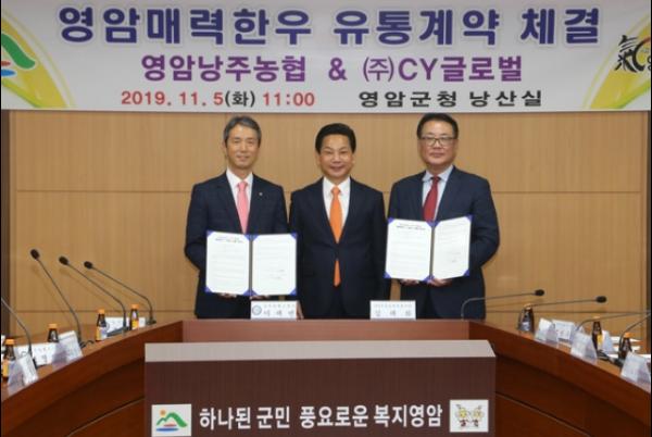 영암군(군수 전동평)은 매력한우 브랜드 경영체인 영암낭주농협이 11월 5일, 국내외적으로 핵심 유통망을 구축하고 있는 벤더업체인 ㈜CY글로벌과의 유통 계약을 체결하며 본격적인 유통경쟁에 뛰어들었다고 밝혔다.