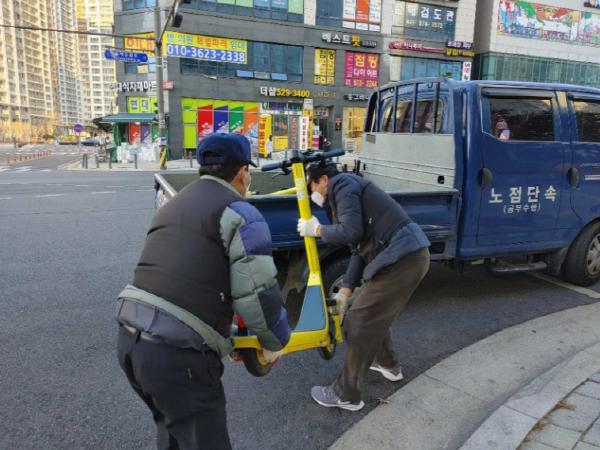 구리시는 지난 24일 공유 전동 킥보드 B업체가 인창동, 수택동 주변 보도에 무단 적치하여 운영 중인 전동 킥보드 50여대를 강제 수거하고 시에 설치한 전동 킥보드를 자체 철수토록 강력 대응했다.