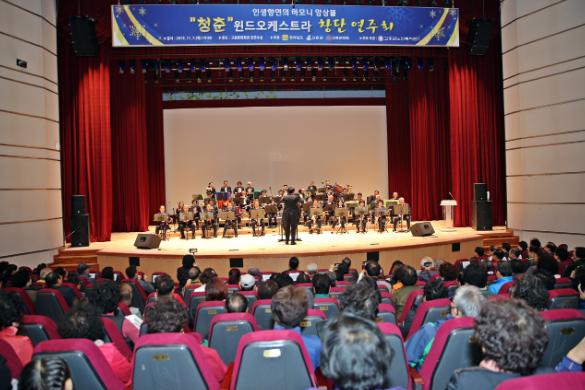 고흥군(군수 송귀근)은 어르신들로 구성된「청춘 윈드오케스트라」창단 연주회가 11월 7일 오후 7시 종합문화회관에서 지역주민 400여명이 객석을 가득 채운 가운데 성황리에 열렸다고 밝혔다.