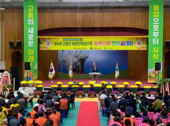 고흥군(군수 송귀근)은 제24회 농업인의 날(11월 11일)을 기념하고 1천 3백여 농업인학습단체 회원들의 화합.단결.친목을 다지고 농업의 가치를 제대로 알리기 위해 마련한 「제14회 농업인학습단체 농촌사랑 한마음대회」를 11월 7일 고흥군 군민회관에서 개최하였다.