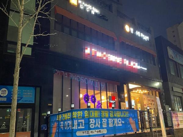 제천시의 몇몇 건물에 착한 임대료에 대한 감사 현수막이 걸렸다.