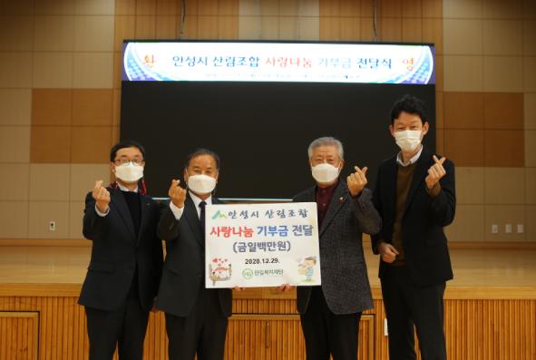 사회복지법인 한길복지재단은 29일에 안성시 산림조합과 연말연시를 맞이하여 기부금 전달식을 가졌다고 밝혔다.
