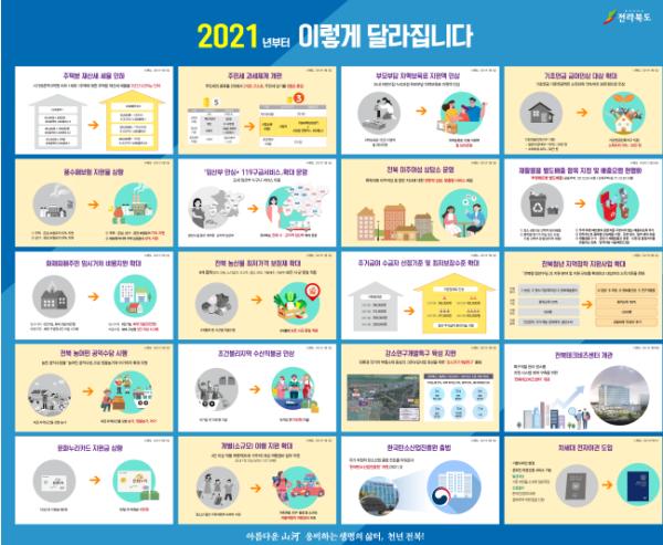 전북도가 새해부터 달라지는 제도와 시책 등을 알기 쉽게 정리한 「2021년부터 이렇게 달라집니다」 책자를 발간했다.