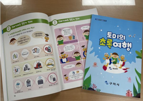 구미시는 쓰레기로부터 지구환경을 보전하고 지역 어린이들의 친환경적 가치관과 시민의식 함양을 위해 초등생용 자원순환 교재「토미의 초록여행」을 발간하였다.