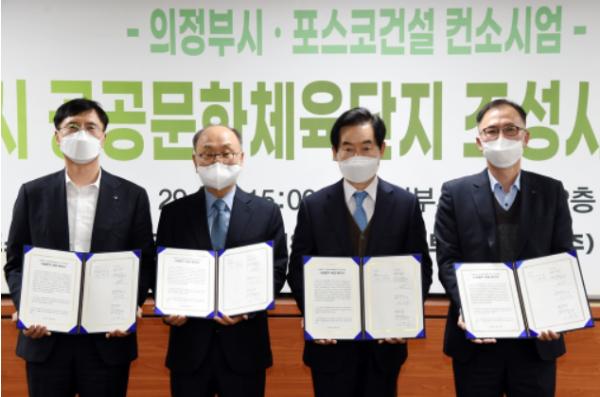 이날 협약식은 안병용 의정부시장, 장형수 ㈜포스코건설 상무, 이재규 ㈜태영건설 대표이사, 이병식 ㈜하나은행 부장 등이 참석한 가운데 진행되었으며 의정부시는 본 사업 추진에 따른 전반적인 행정적 지원 등을 실시하고, 포스코건설 컨소시엄은 도시개발구역 지정 및 개발계획 수립 등 관련 인·허가 업무 수행, 공공문화체육단지 조성, 개발이익 및 사업이익의 공익환원 이행을 위해 노력할 것을 합의했다.