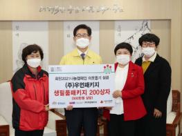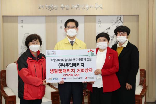 공주시 소재 기업 우먼패키지가 연말연시 저소득층을 위한 생활용품 200개를 전달했다.