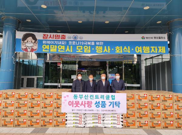 ㈜동부산컨트리클럽(대표 최성필) 임직원들은 연말연시를 맞아 지난 29일 웅상출장소를 방문해 주위 돌봄 이웃들에게 전달해 달라며 쌀 20kg 56포와 라면 168박스(640만원 상당)를 기탁했다.