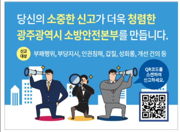 신고 대상은 ▲갑질행위 ▲성비위 ▲부당인사 개입 및 예산낭비 행위 ▲부정청탁행위 ▲금품·향응 수수행위나 관행적 부패행위 등이다. 이용은 소방공무원과 민원인 모두 가능하다.