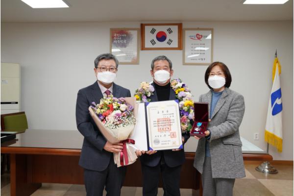 농업인단체 중 가장 선배들로 구성된 농촌지도자회 활동을 45년간 해 오면서 헌신적인 지역 활동과 경북농촌지도자회 도연합회장으로서 농 업인들의 권익향상과 경쟁력을 갖추는데 노력한 공로를 인정받아 산 업포장을 받게 됐다.